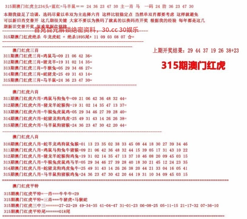 | 311期:九肖 | 鸡虎猪蛇龙羊狗猴兔 | 蛇37中 |